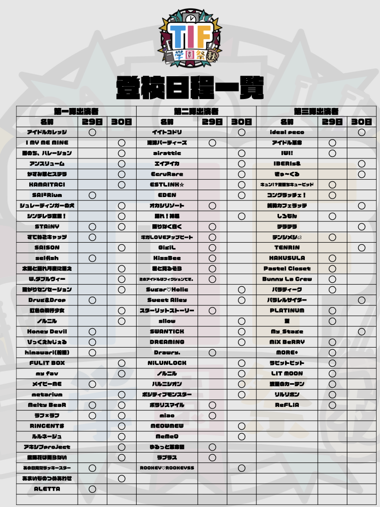 https://www.tifgakuen.com/【第一弾出演者】