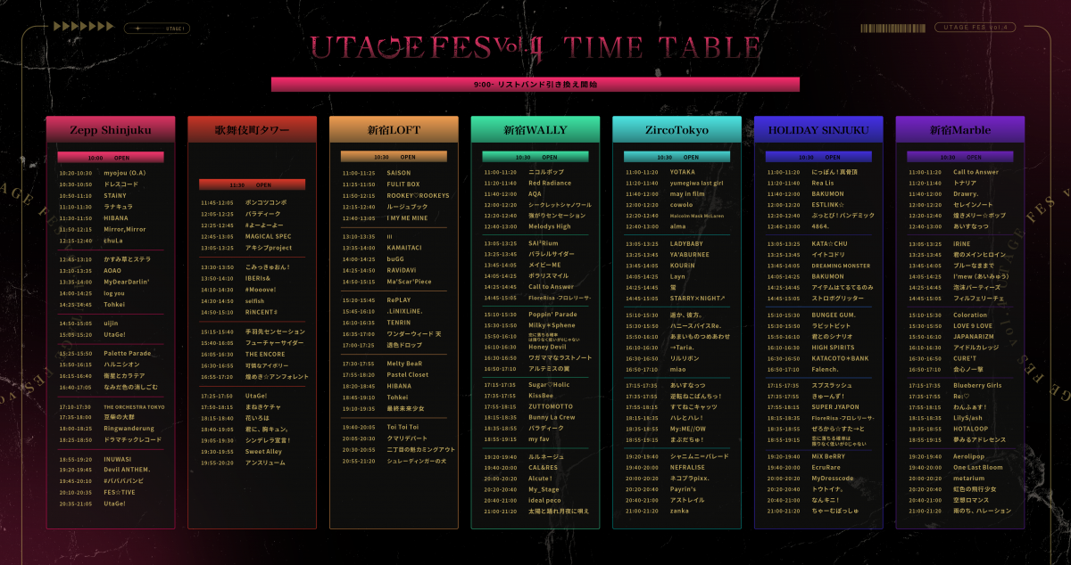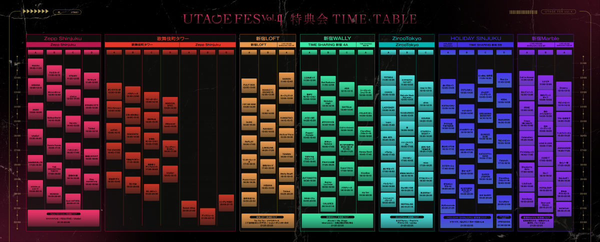場所:Zepp Shinjuku / 歌舞伎町タワーステージ / 新宿LOFT / SHINJUKU WALLY / Zirco Tokyo / HOLIDAY SHINJUKU / namco TOKYO MUSIC & PLAY LOUNGE 『ASOBINOTES』(アソビノオト)