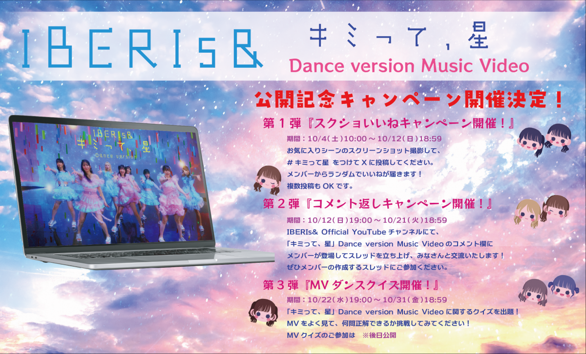 IBERIs& Official YouTubeチャンネルにて、「キミって、星」Dance Version Music Videoのコメント欄にメンバーが登場してスレッドを立ち上げ、みなさんと交流いたします!