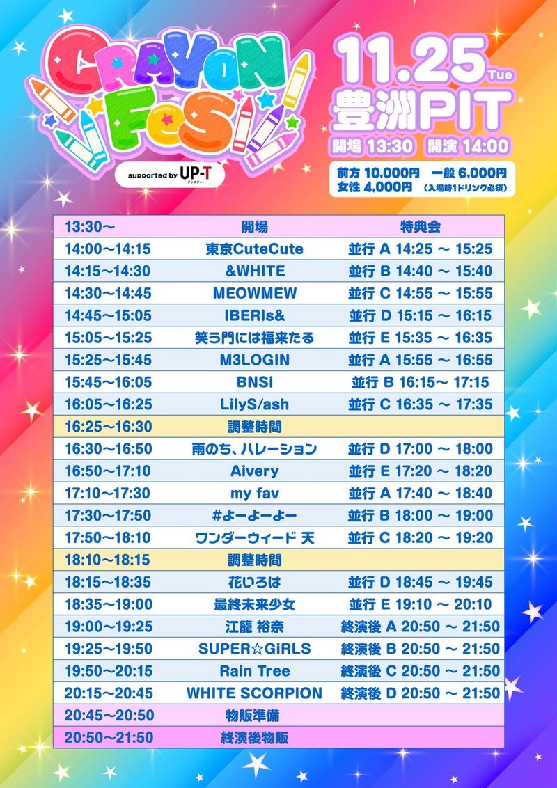 11月25日(火) 「CRAYON Fes supported by UP-T」@豊洲PITのタイムテーブル発表