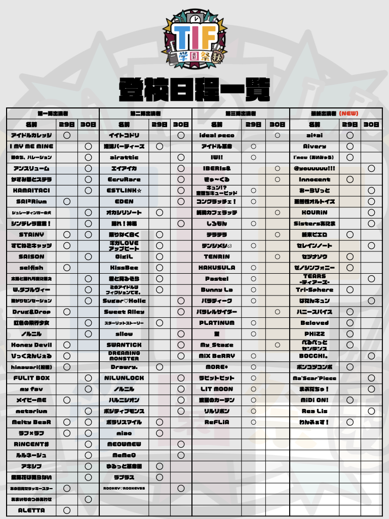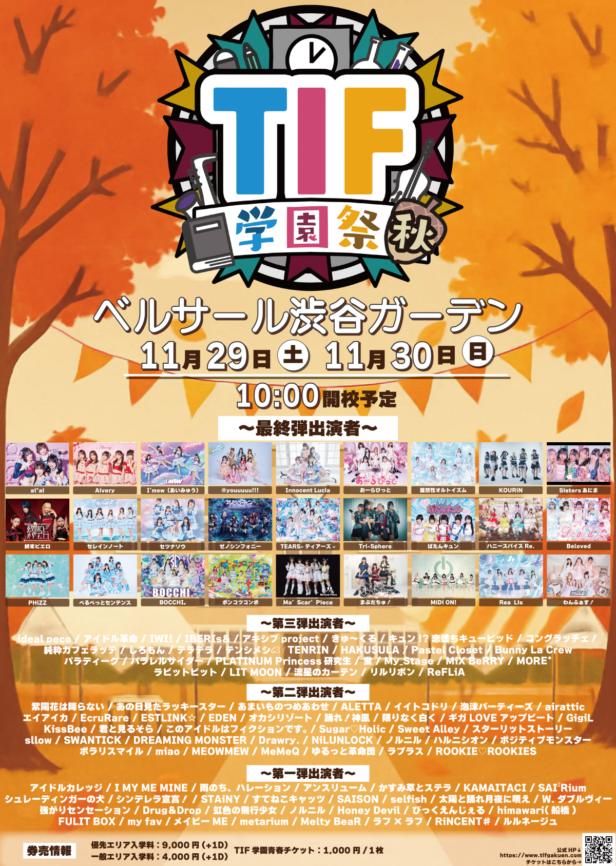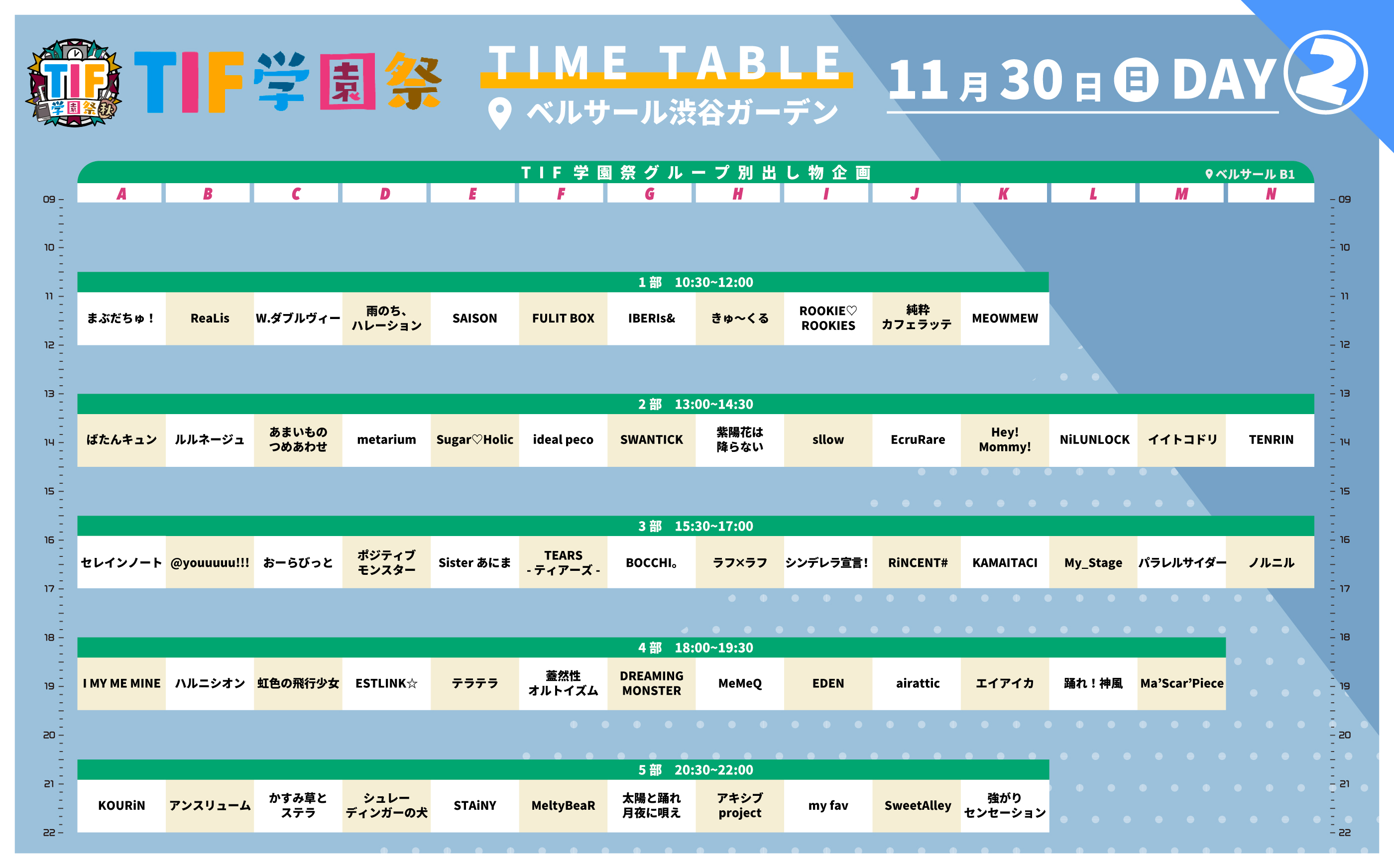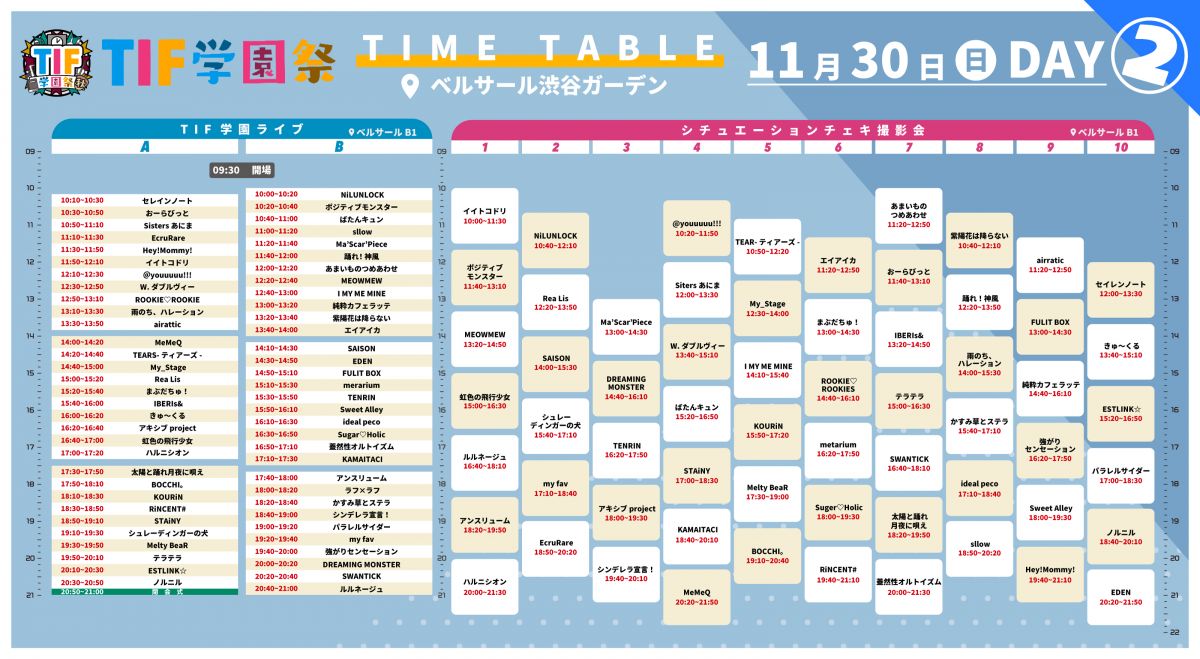 11月30日(日)ベルサール渋谷ガーデンにて行われる「TIF学園 「学園祭」秋」のタイムテーブル公開