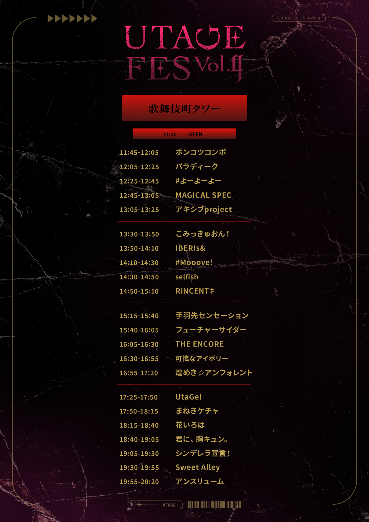 1/27(火)に新宿にて行われる『UTAGE Fes Vol.4』のタイムテーブルが公開!IBERIs&出演メンバーも公開!
