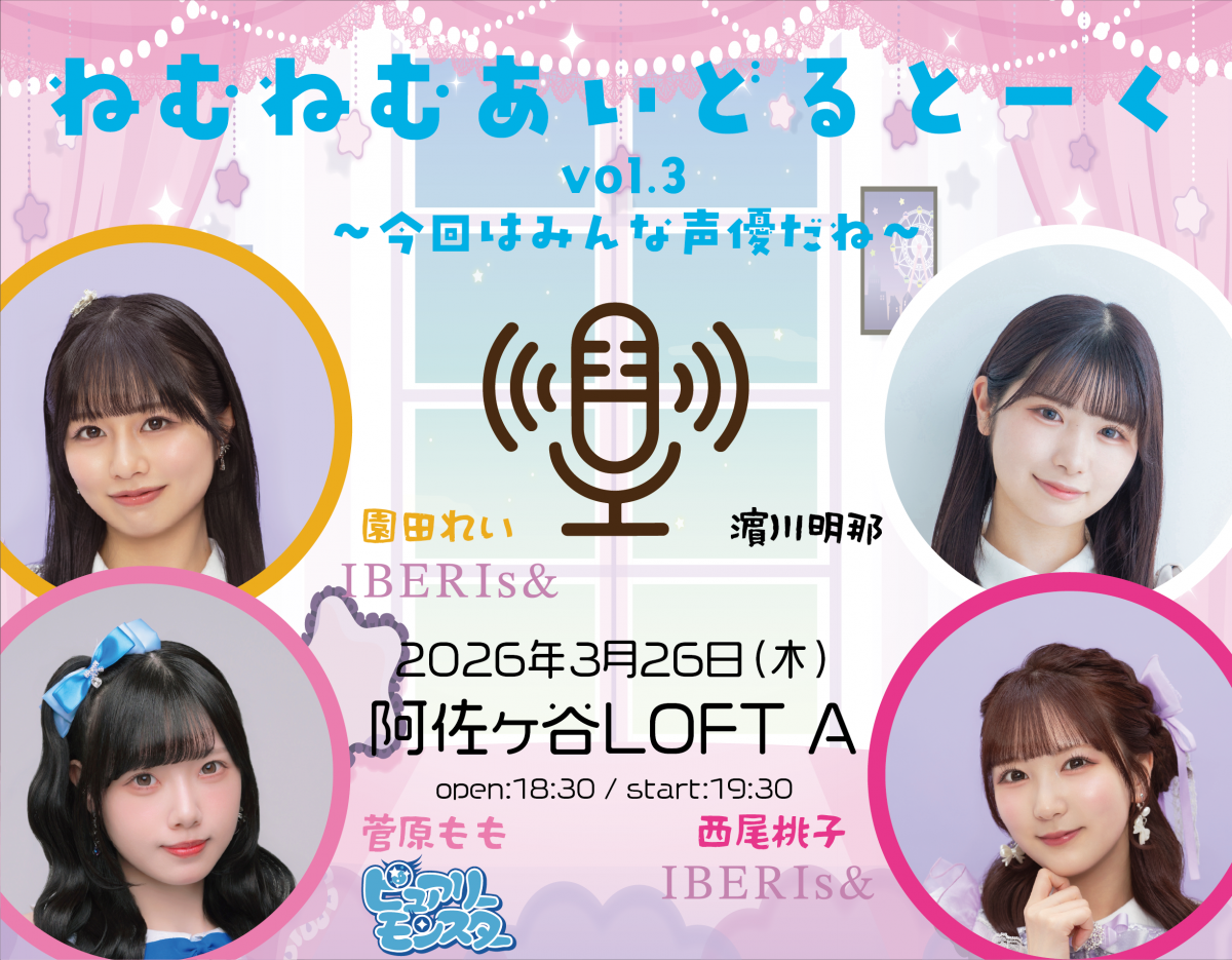 3/26( 木)@阿佐ヶ谷LOFT Aにて行われる『ねむねむあいどるとーく vol.3 〜今回はみんな声優だね〜』特典会詳細に関しまして